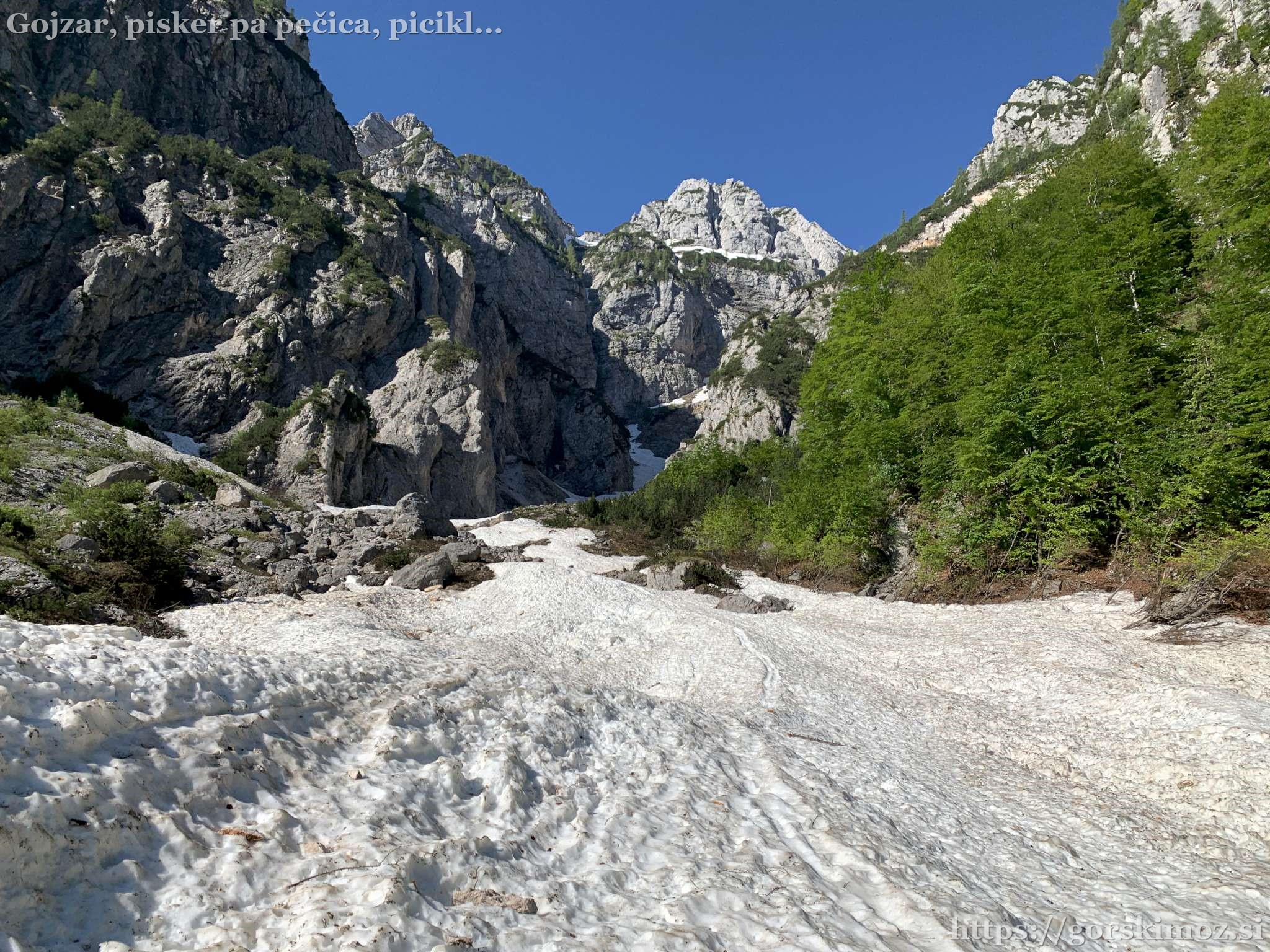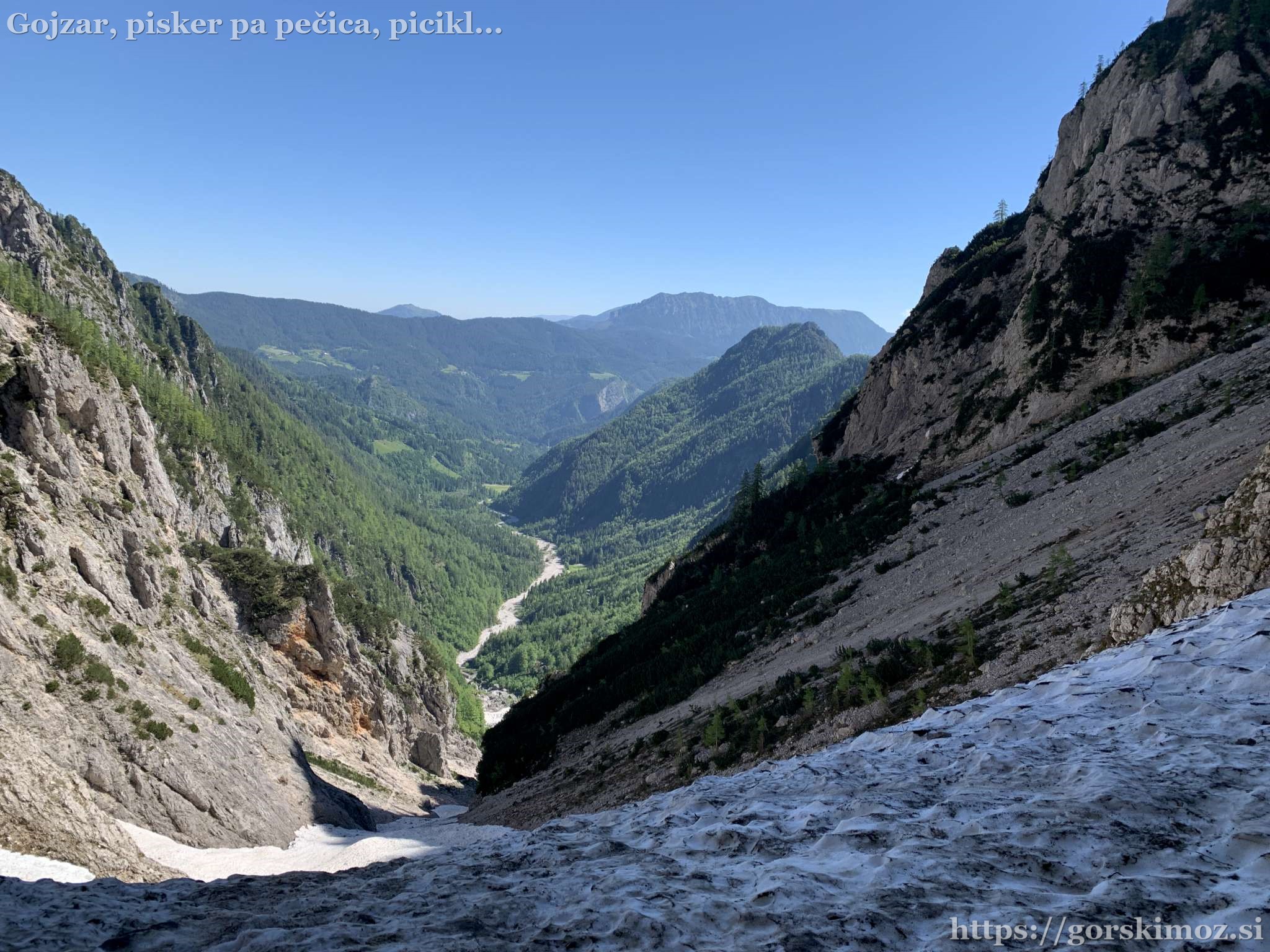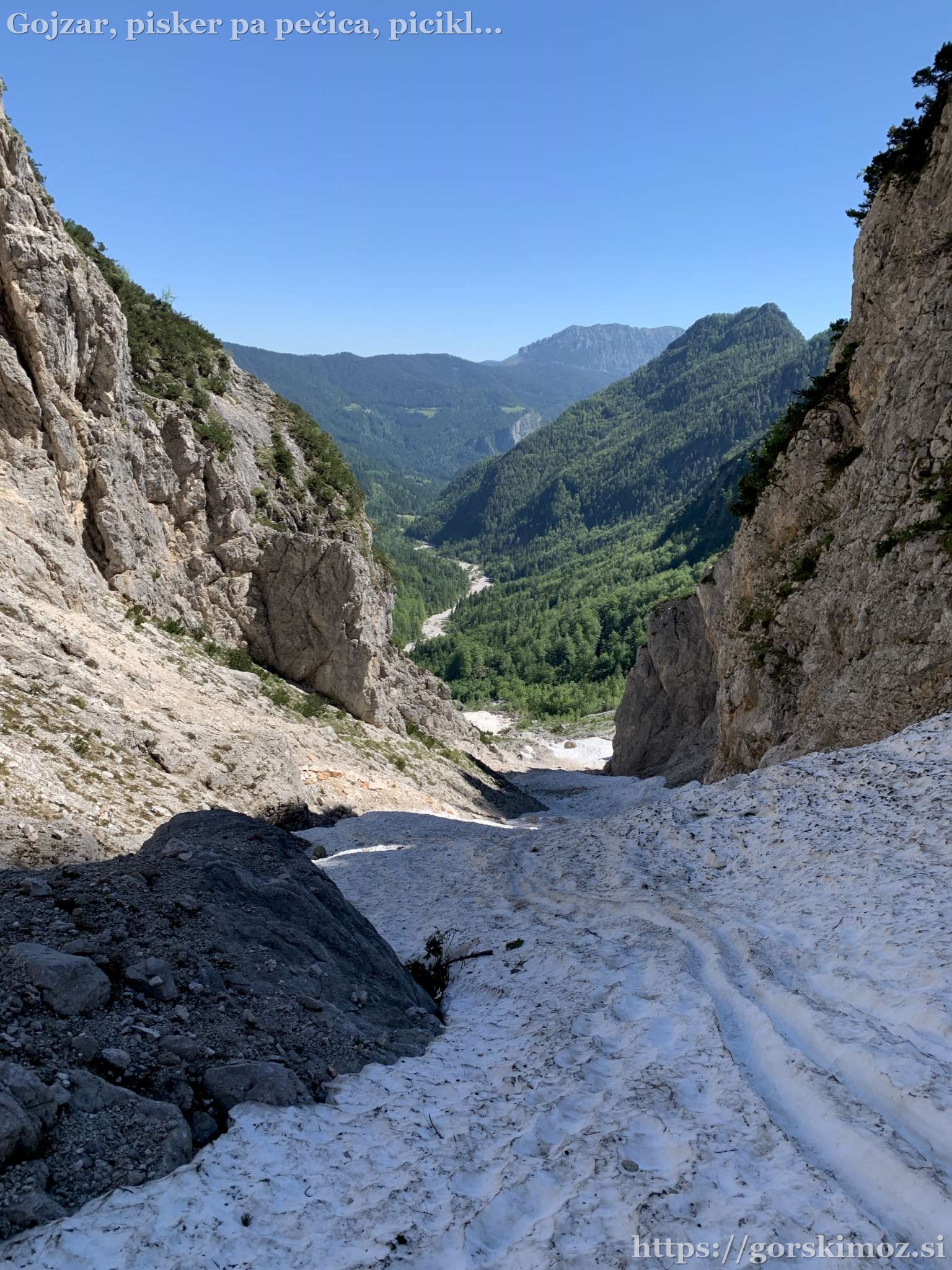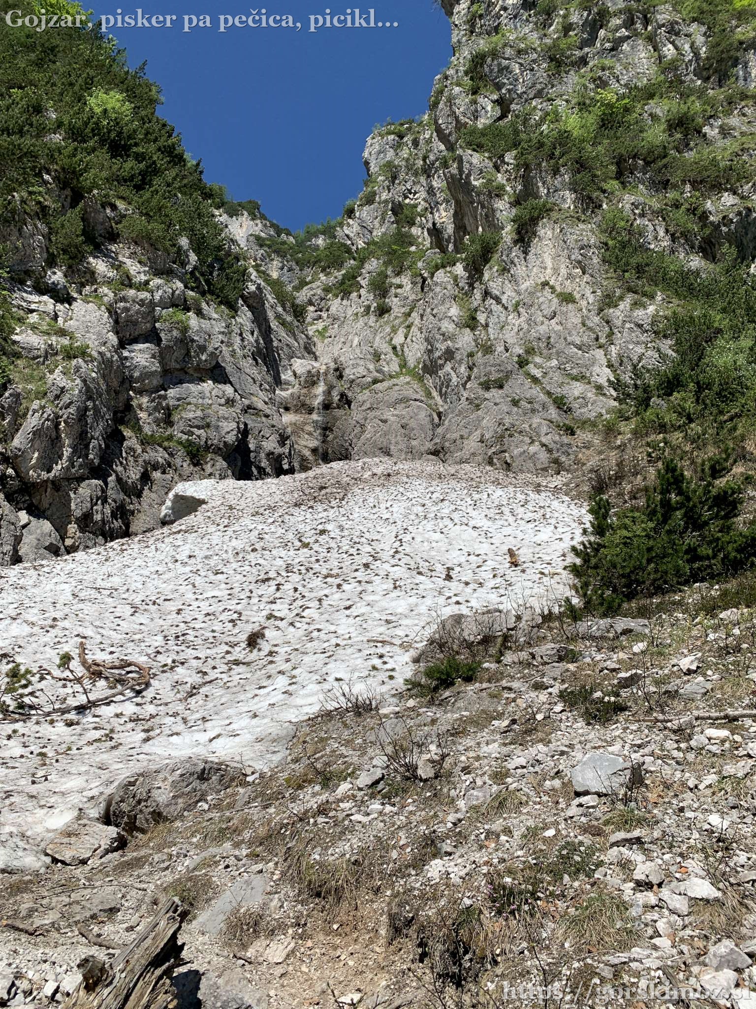 Za ogled škafa sva si izbrala res lep dan in se naužila lepot v Matkovem kotu. Ker sva se vzpenjala po strugi (glede na to, kako je shojena pot nisva bila edina) sva več kot polovico časa hodila po snegu. Cepin, dereze in čelada so prišle še kako prav, čeprav bi se mogoče dalo tudi brez opreme. A varnost je le na prvem mestu…