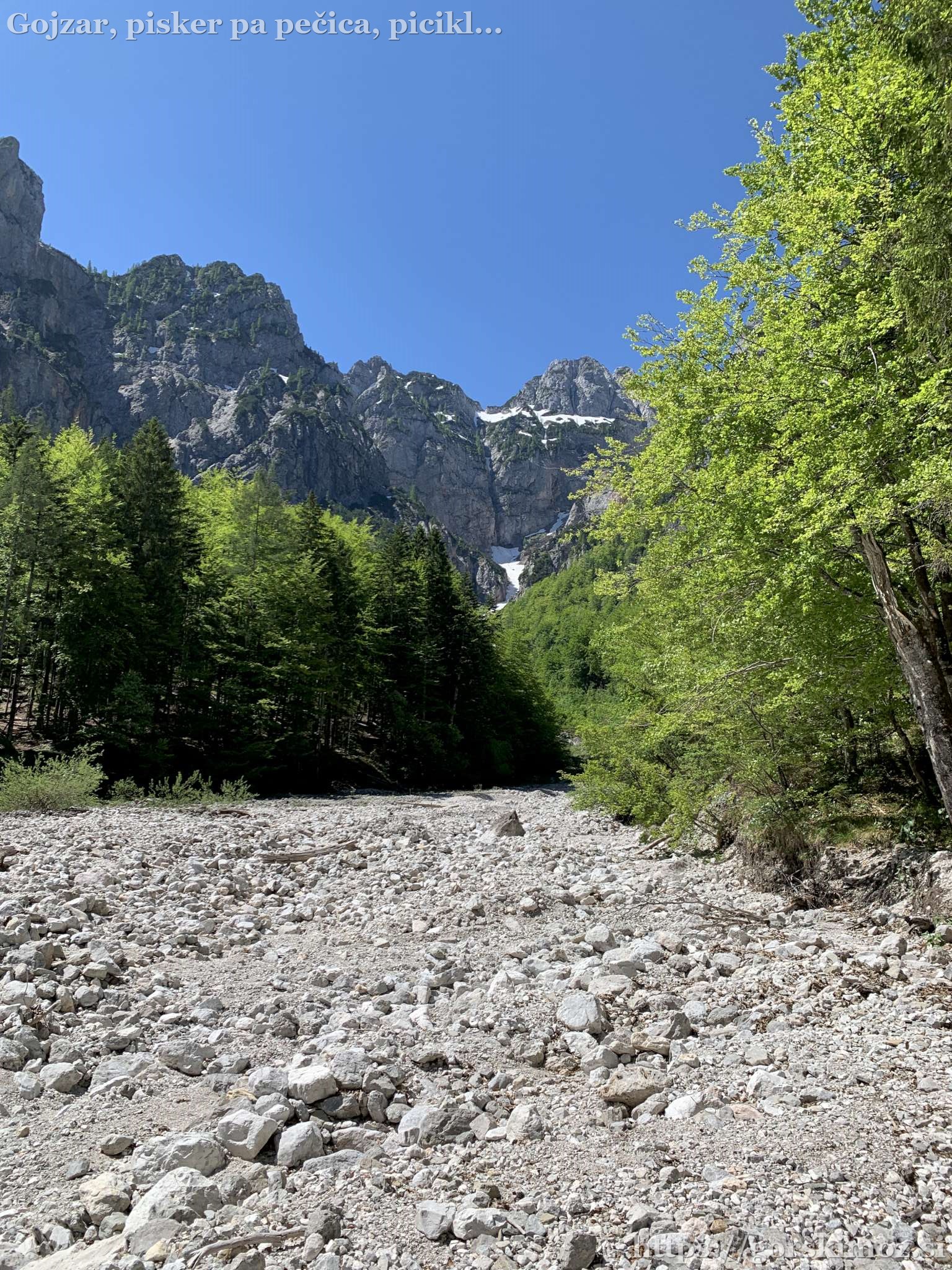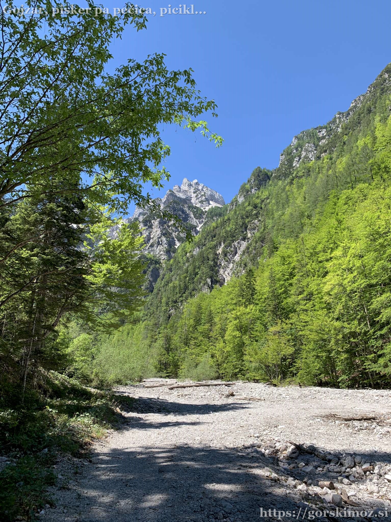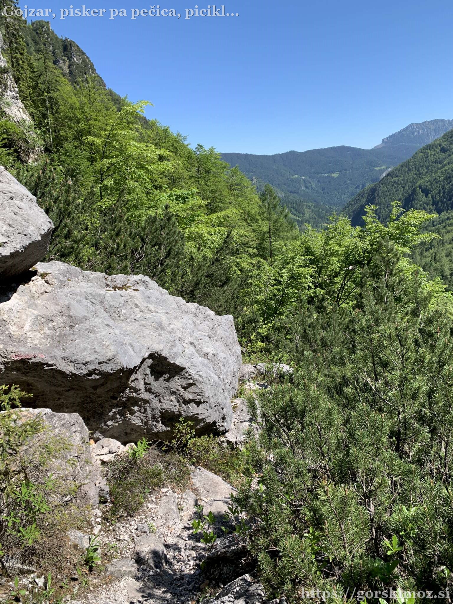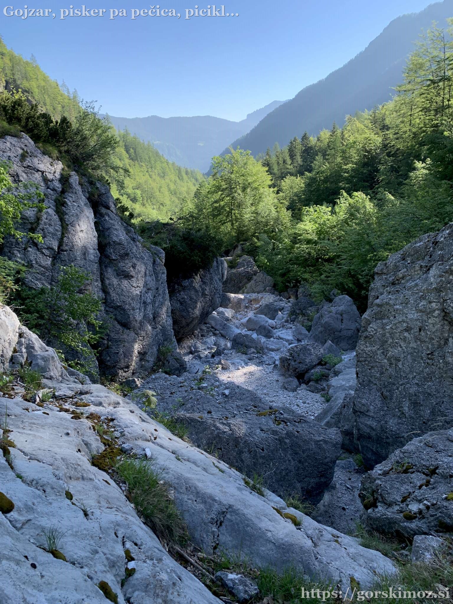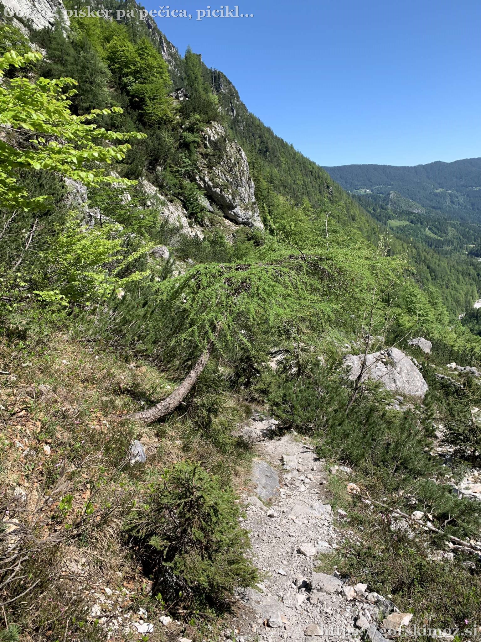 Za ogled škafa sva si izbrala res lep dan in se naužila lepot v Matkovem kotu. Ker sva se vzpenjala po strugi (glede na to, kako je shojena pot nisva bila edina) sva več kot polovico časa hodila po snegu. Cepin, dereze in čelada so prišle še kako prav, čeprav bi se mogoče dalo tudi brez opreme. A varnost je le na prvem mestu…
