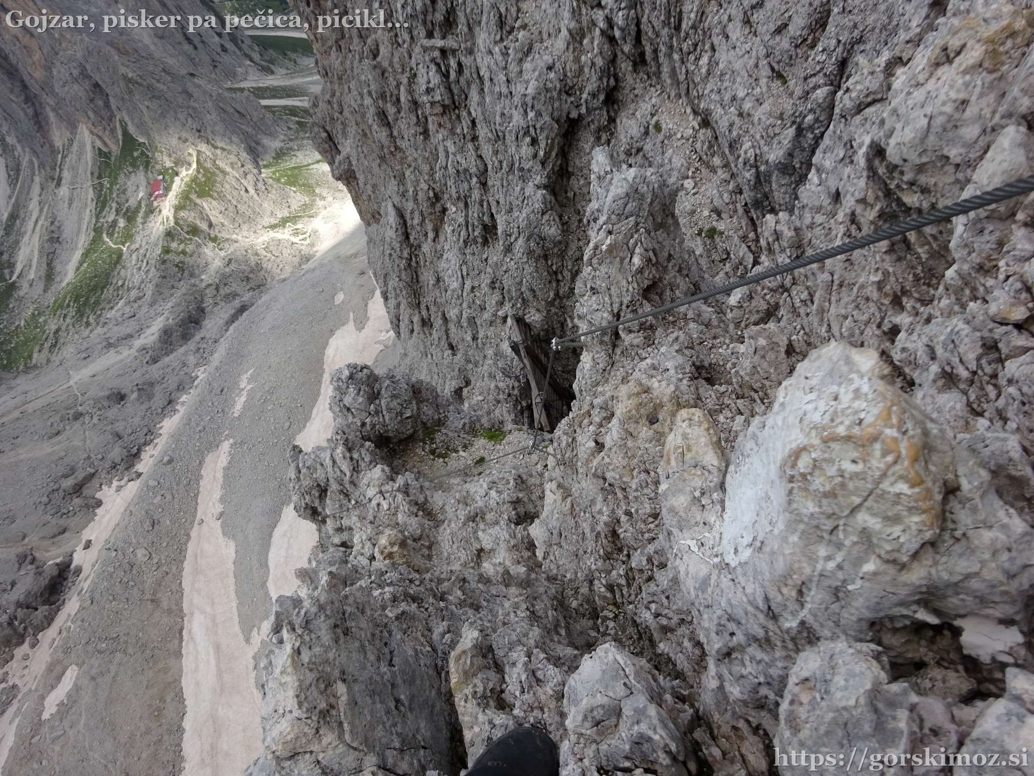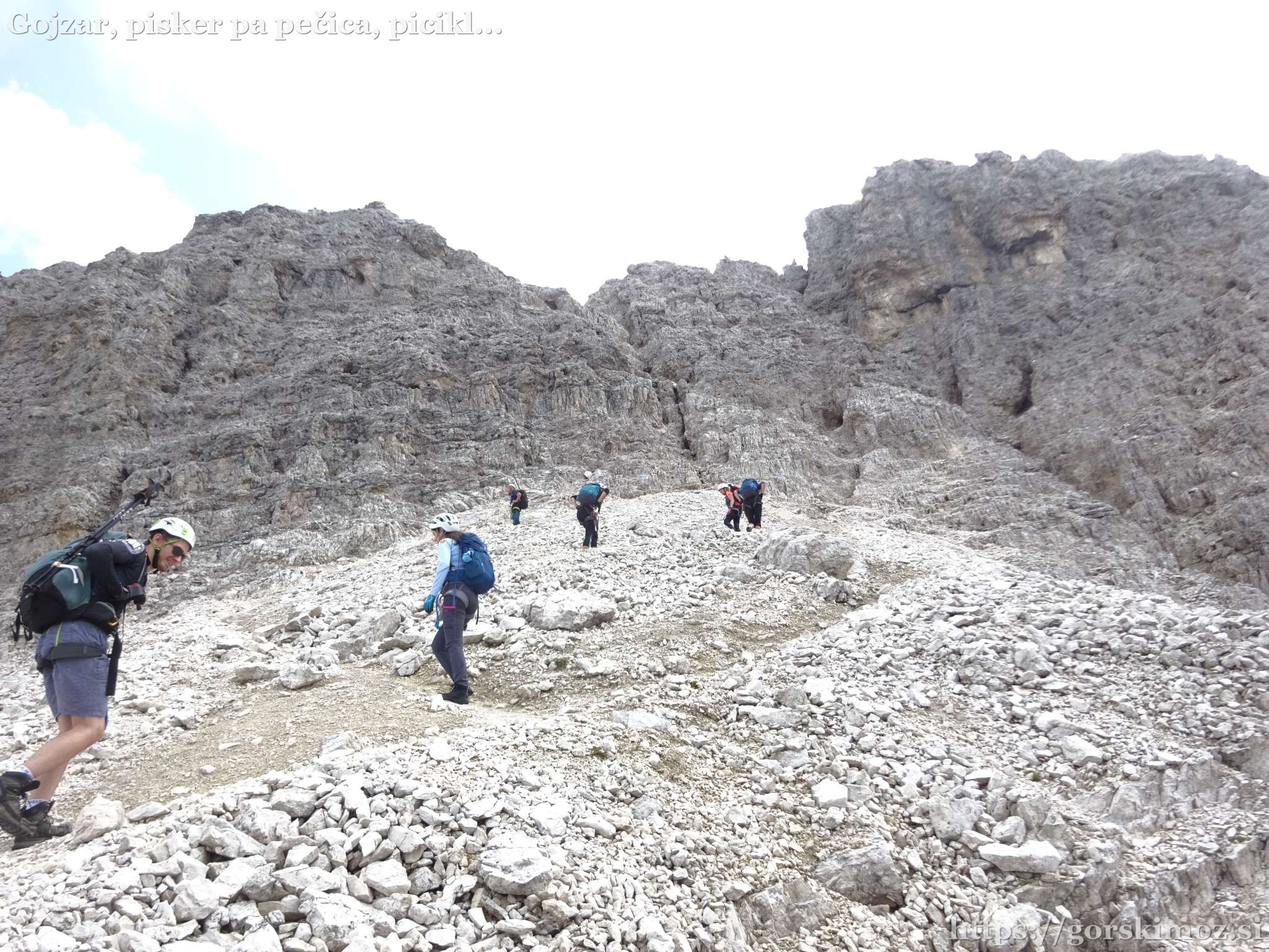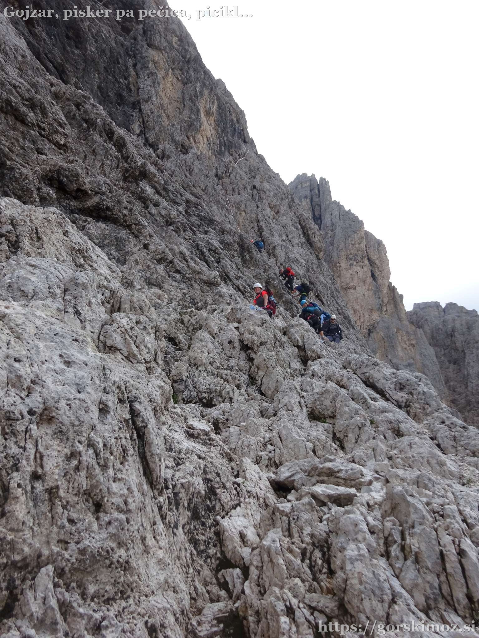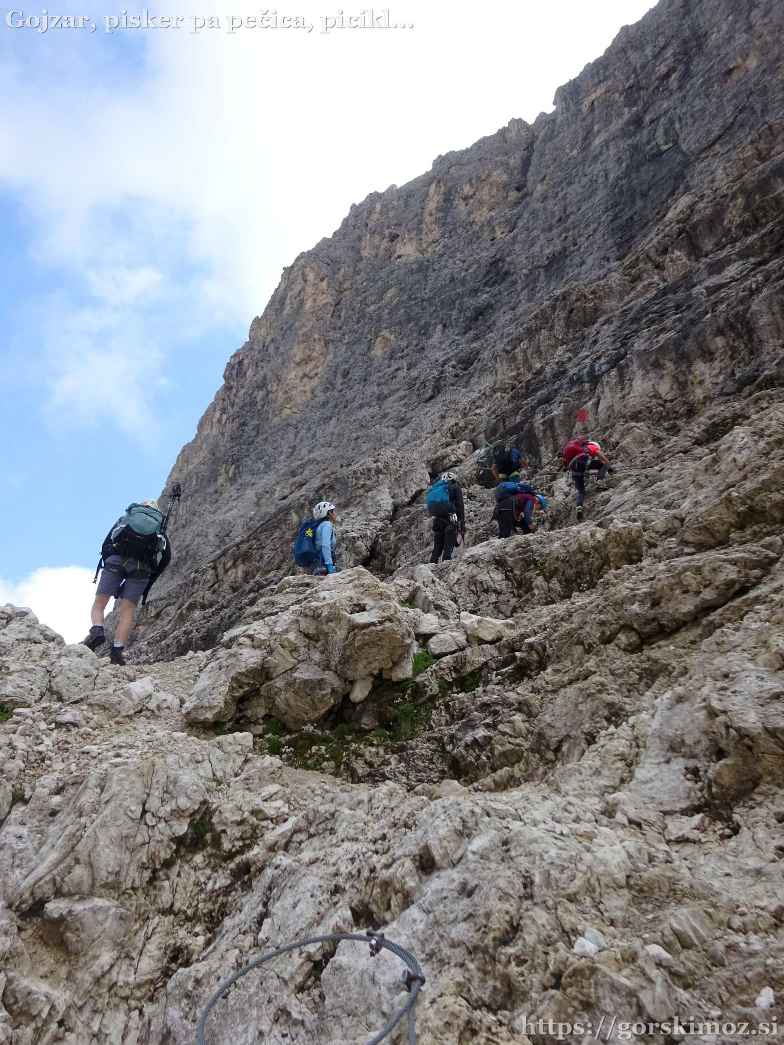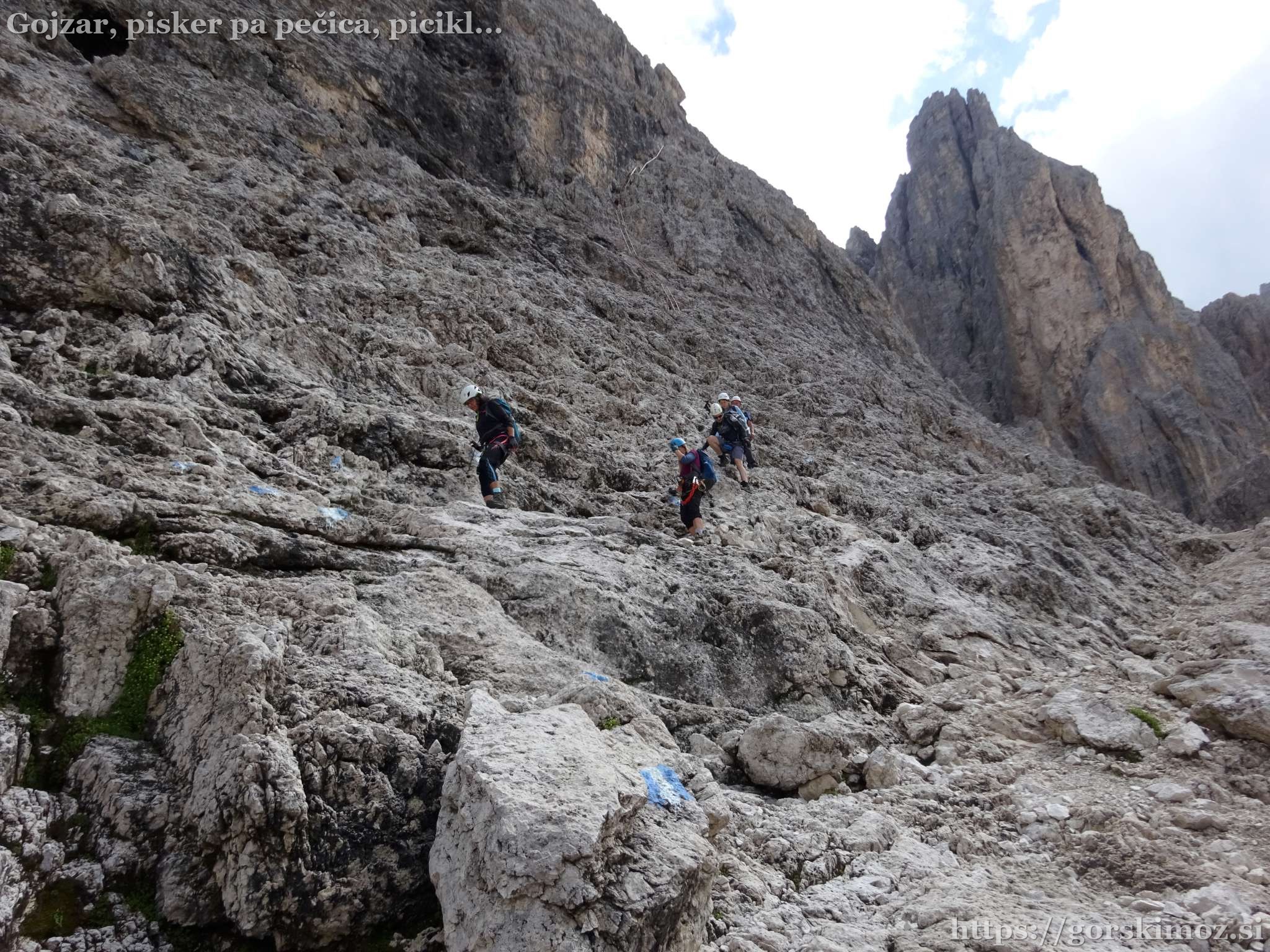 Kot sem že prej napisal, bodo na pohodu do koče prišli vsi udeleženci. Le nekaj pa jih bo lahko nadaljevalo po ferati Merlone. Ferata je namreč zelo zahtevna in zelo zračna, zato se naj nanjo odpravijo le izkušeni pohodniki.