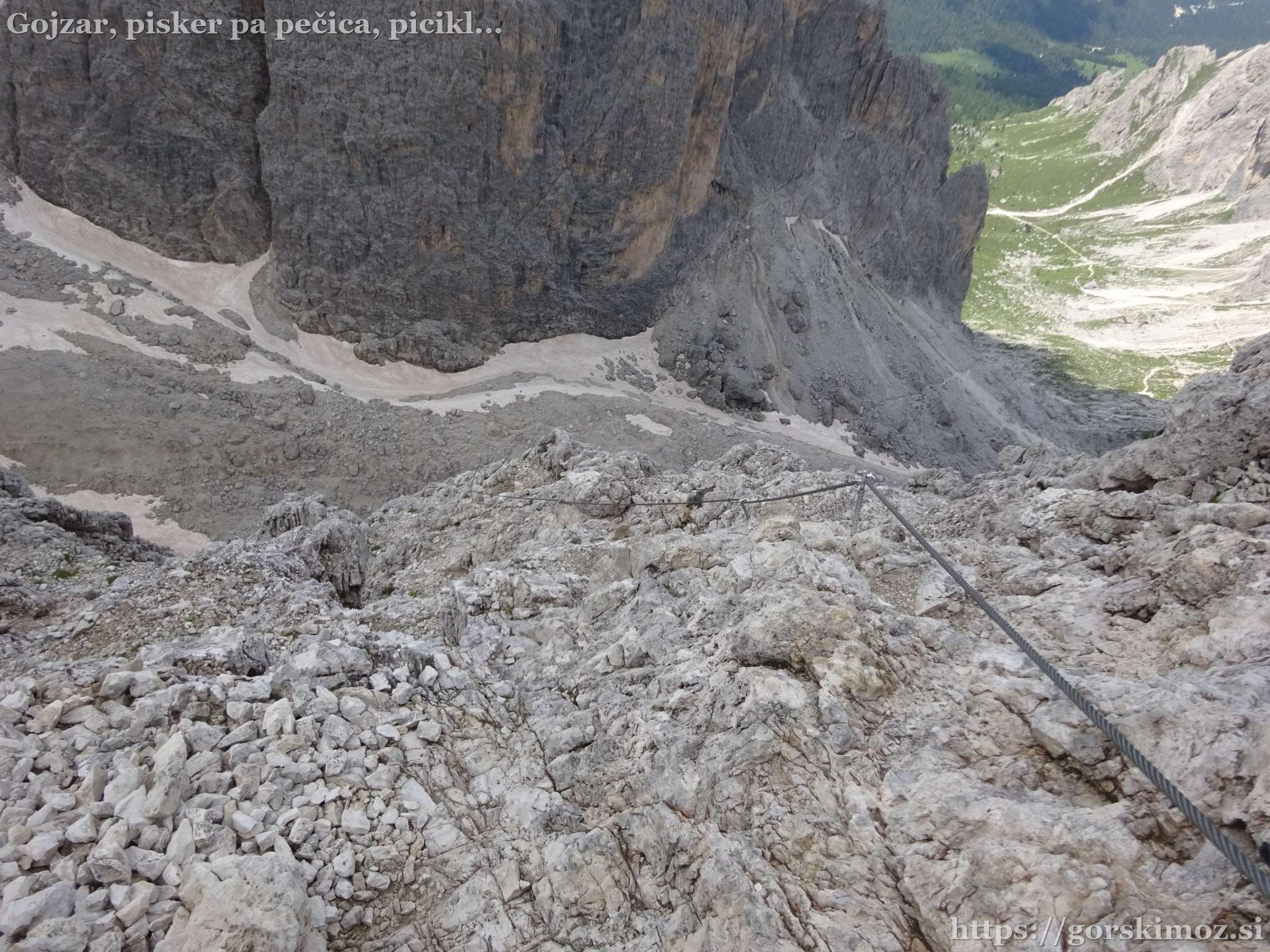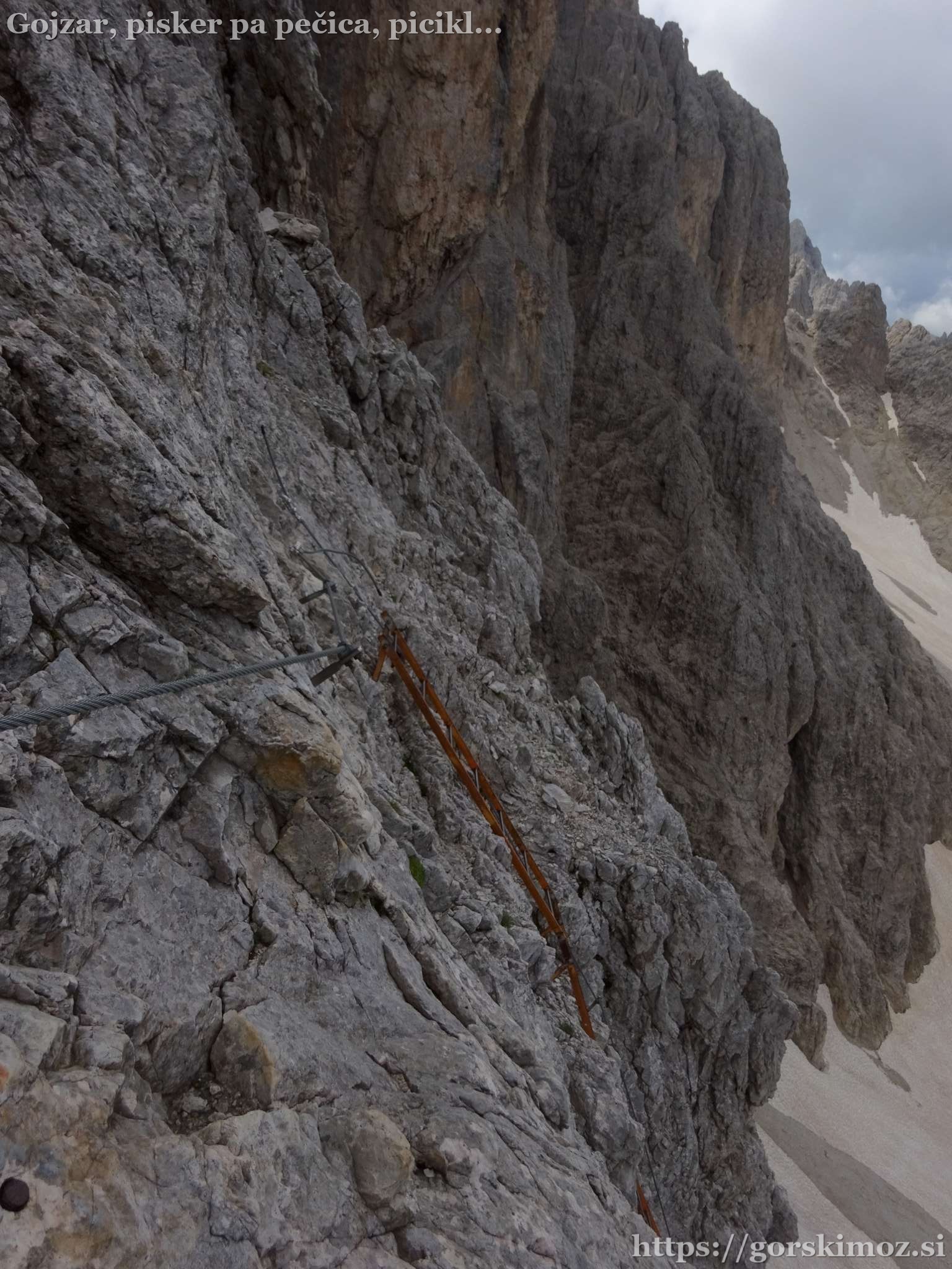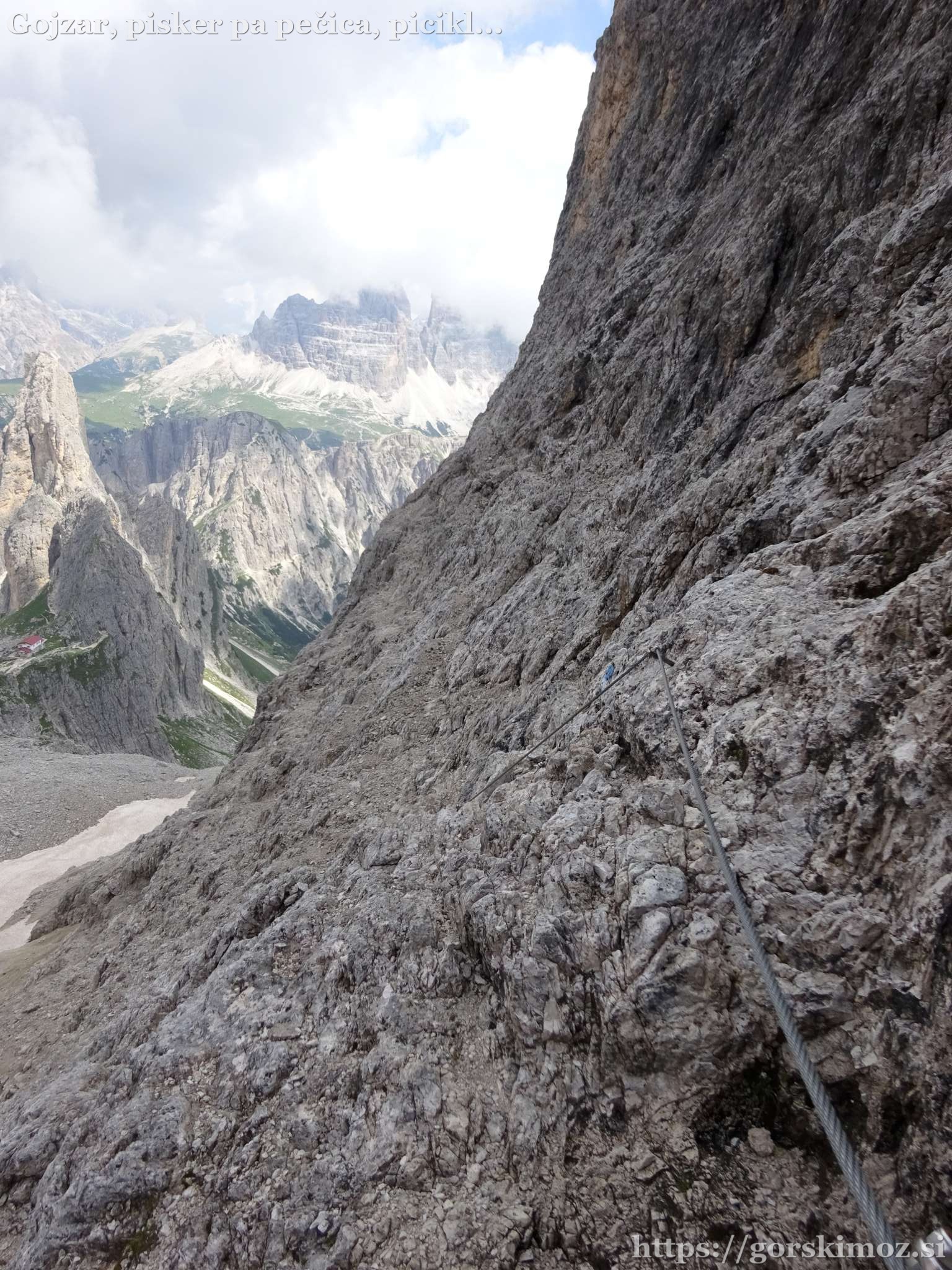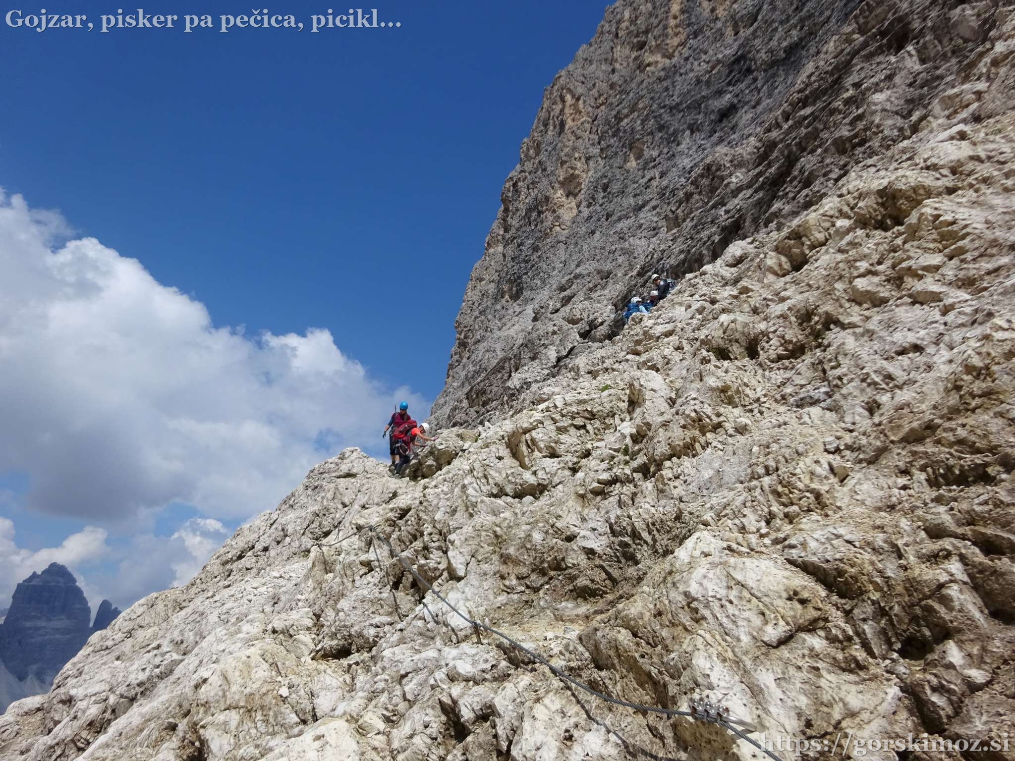 Kot sem že prej napisal, bodo na pohodu do koče prišli vsi udeleženci. Le nekaj pa jih bo lahko nadaljevalo po ferati Merlone. Ferata je namreč zelo zahtevna in zelo zračna, zato se naj nanjo odpravijo le izkušeni pohodniki.