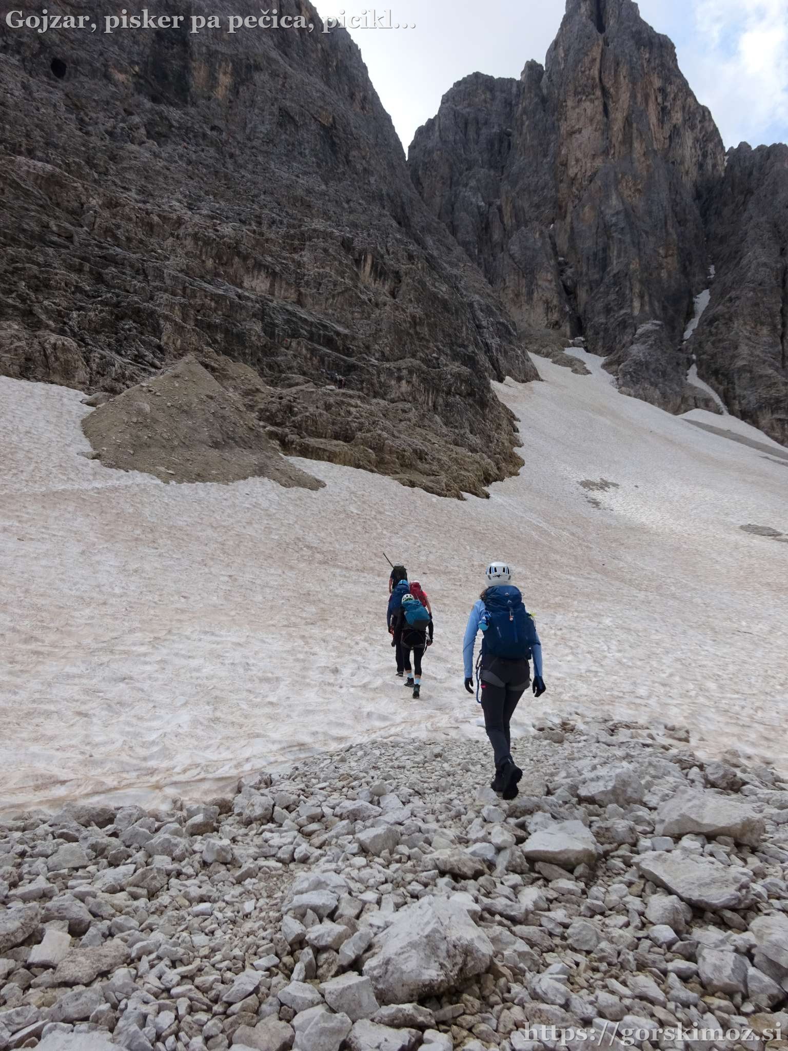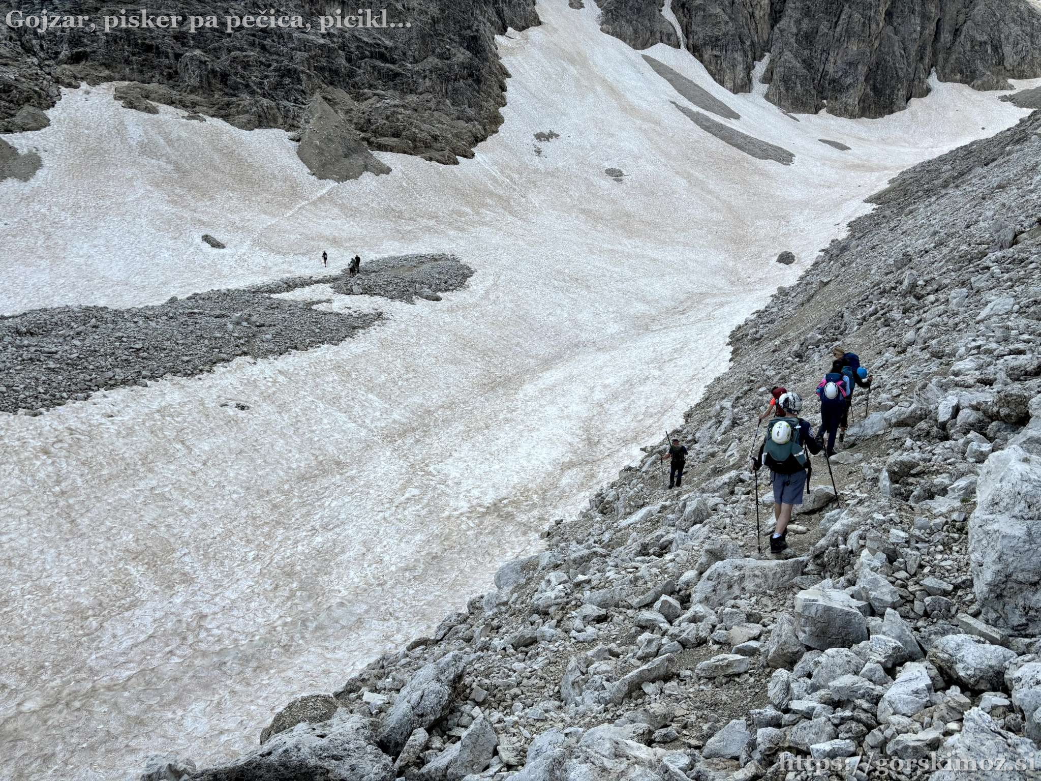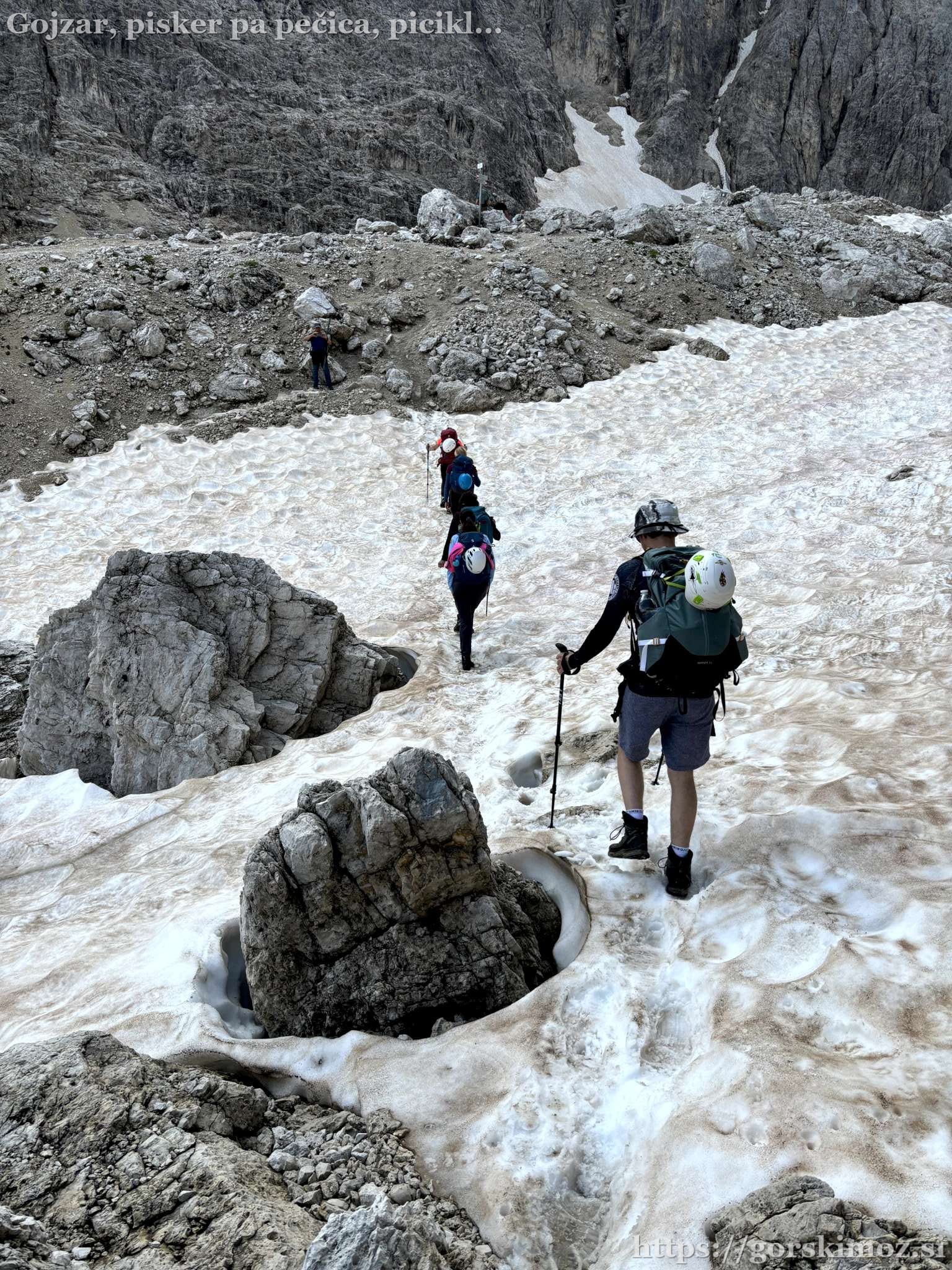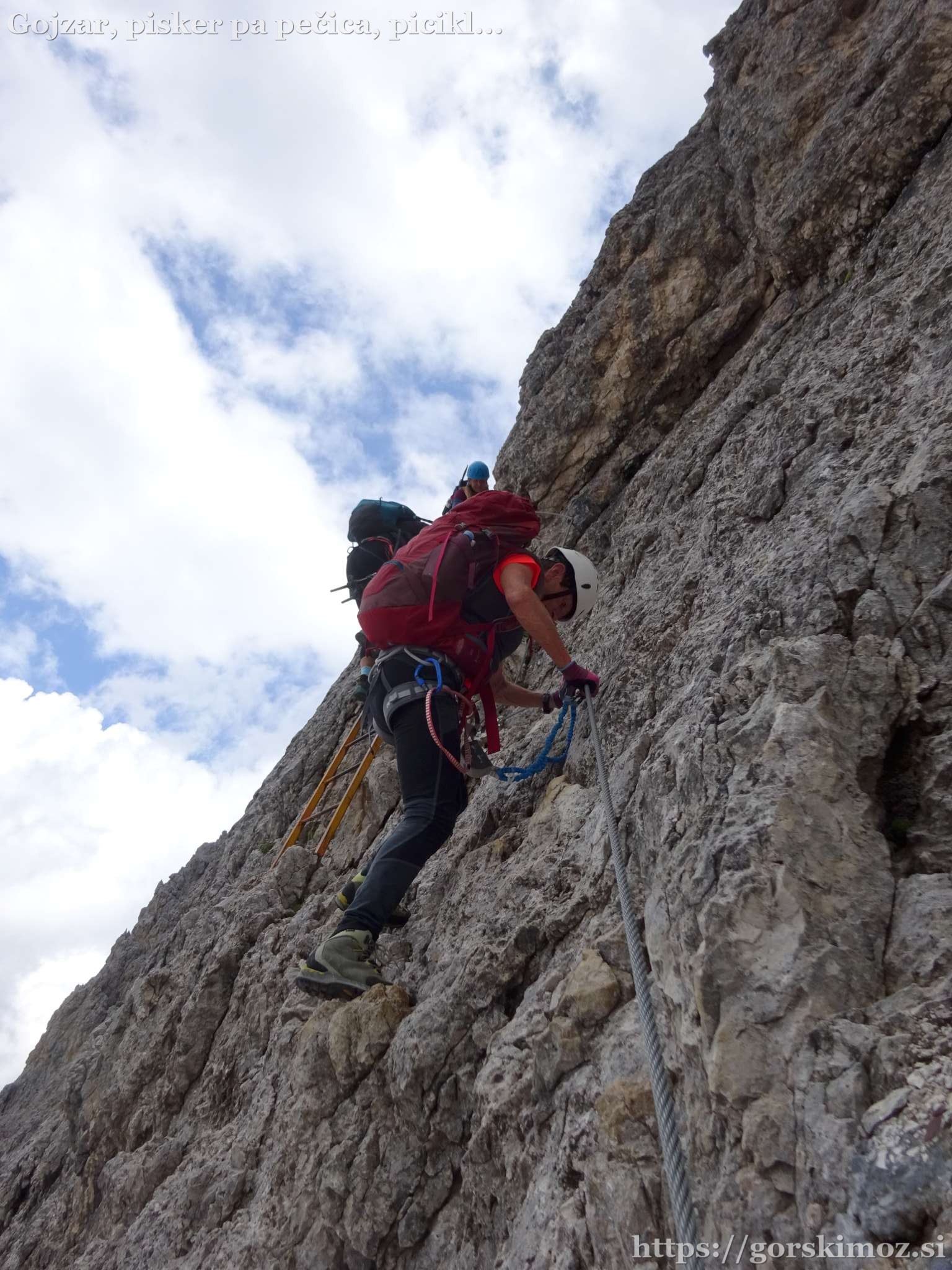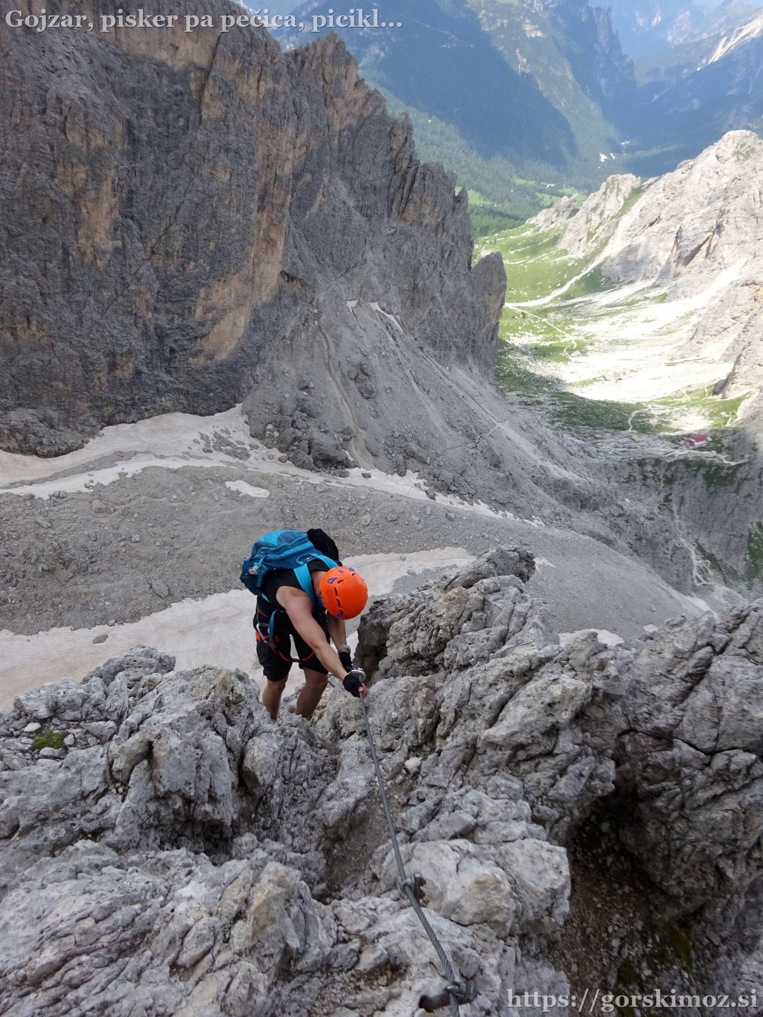 Kot sem že prej napisal, bodo na pohodu do koče prišli vsi udeleženci. Le nekaj pa jih bo lahko nadaljevalo po ferati Merlone. Ferata je namreč zelo zahtevna in zelo zračna, zato se naj nanjo odpravijo le izkušeni pohodniki.